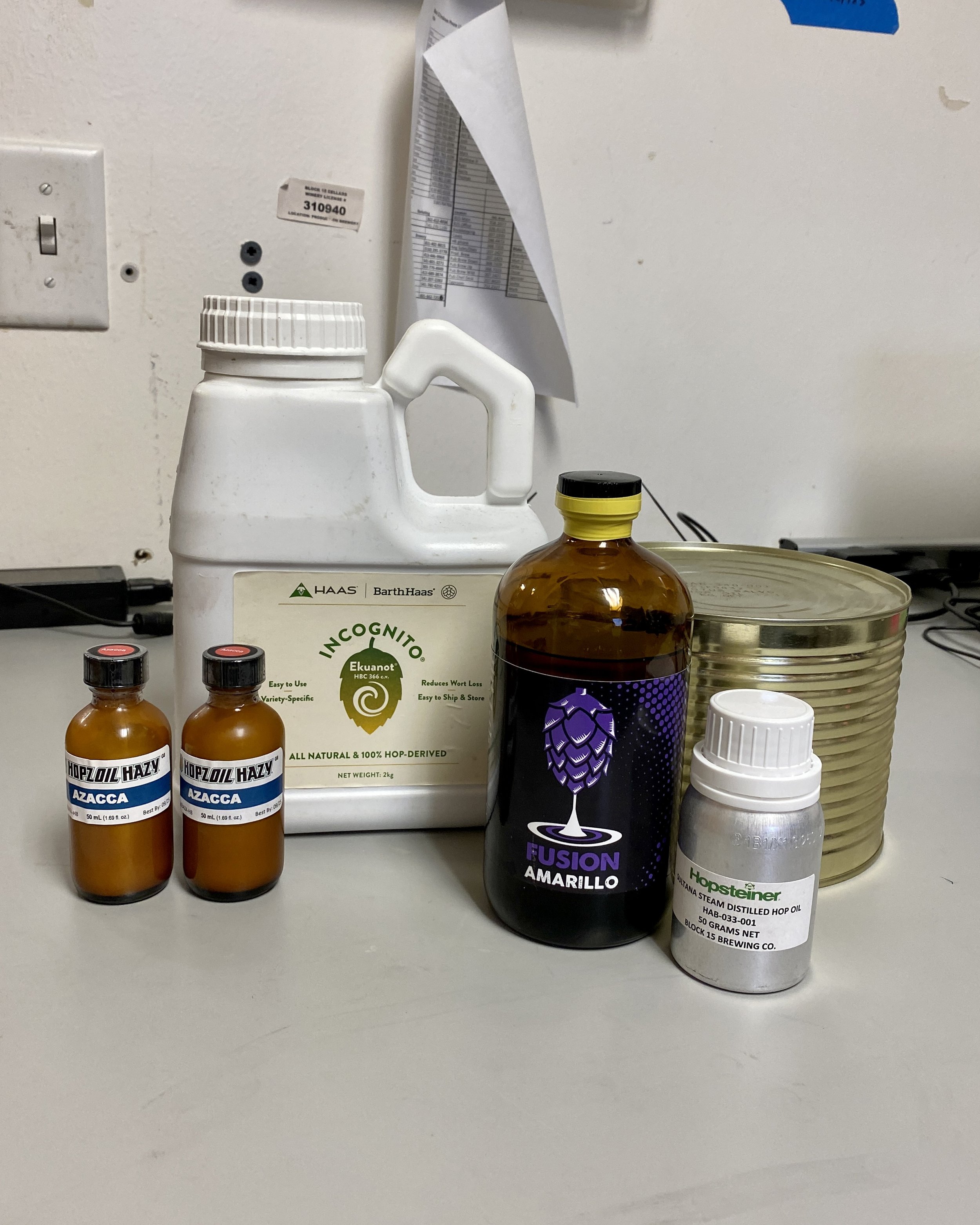 Sometimes made from whole leaf hops, sometimes from CO2 extract, hop oils, like Salvo, add no bitterness to the beer, but are loaded with essential oils that impart bright, fresh hop flavor. These products are liquid at room temperature and can be added later in the process, often just before packaging. We commonly use Glacier Hop Ranch’s Hopzoil, Oast House’ Fusion Terpenes, and Hopsteiner’s Steam Distilled Hop Oil. Joy gets a good dose of Hopzoil.
