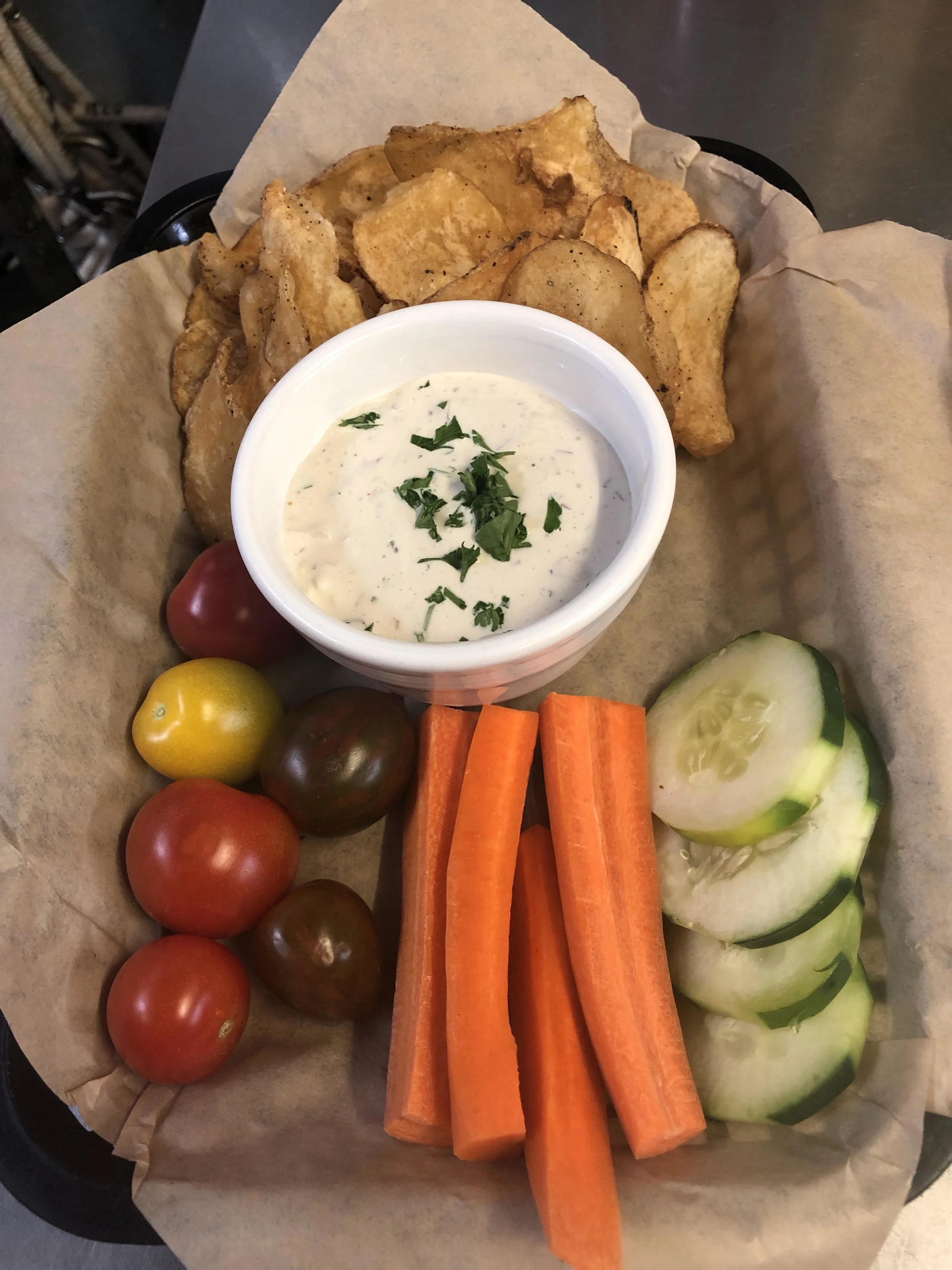 The Valley Vegetarian / Our hearty vegetarian sandwich featuring fresh produce from the Willamette Valley! Denison Farms’ sliced tomatoes, Beene Farms’ cucumbers, Peoria Farm Markets’ sweet onions, house black pepper ricotta and fresh greens finished with avocado, sunflower seeds, and local rosemary honey. Served on house baked ale bread and with beer battered fries. Ask your server about side upgrade options. / $11.49