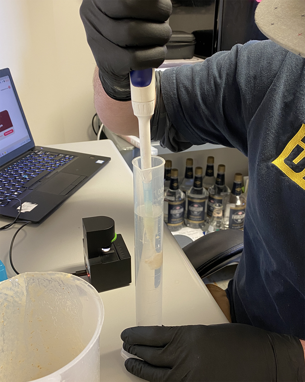 Sometimes it’s feasible to conduct a mock blend, which is a miniature version of the final blend. Using a few milliliters of each barrel in the prospective blend creates a pretty reliable taste of what the end product will taste like. As simple as that sounds, it’s still important to really look at all of the pieces of the puzzle. For instance, a barrel with a lot of residual sweetness will be dried out by wild organisms, so unless all of the constituents are completely dry and clean at the time of sample, it will likely still evolve once blended.
